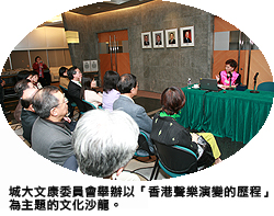 香港城市大學(城大)文康委員會1月19日舉辦「城市文化沙龍」,由著名聲樂家及藝術教育家費明儀女士任主講嘉賓,與眾來賓回溯香港聲樂演變的歷程。