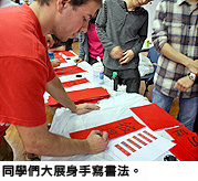 寫揮春的攤位,讓我們嘗試用毛筆學(xué)寫漢字,有些同學(xué)更發(fā)掘出自己的中國(guó)書法潛能。在新春祝願(yuàn)的攤位,我們寫下祝願(yuàn)詞語後,便可得到各式各樣的中國(guó)小吃及糖果。最受歡迎的是中國(guó)文化小測(cè)驗(yàn)攤位,眾多輪候參與遊戲的同學(xué)排成了長(zhǎng)長(zhǎng)的人龍。這個(gè)遊戲測(cè)試大家對(duì)中國(guó)文化的認(rèn)識(shí),答對(duì)者可獲得巧克力作為獎(jiǎng)品。現(xiàn)場(chǎng)還有由同學(xué)扮演的財(cái)神爺大派巧克力金幣,與眾同樂。