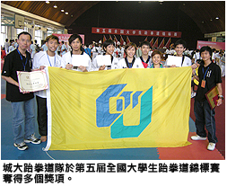 香港城市大學(城大)跆拳道隊7月底首次參加北京第五屆全國大學生跆拳道錦標賽取得佳績,勇奪九個獎項。