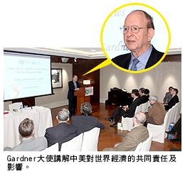 Gardner大使還談及《關稅及貿易總協定》的政治成果,論述了中美兩國面對的經貿及發展挑戰,詳盡分析國際貨幣基金會的改革及貿易保護主義等問題,並跟與會者分享了他的觀點。