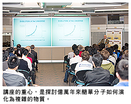 「進化尚未結束,」萊恩教授對出席講座的城大教職員和中學生說。「我們人類只是時間進程中的一個點,宇宙對我們漠不關心,只是隨時間推移而不斷演化。」
