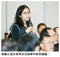 隨後的答問(wèn)環(huán)節(jié)由比較文學(xué)及翻譯講座教授張隆溪教授主持,與會(huì)者對(duì)演講中的某些議題提問(wèn),涉及所謂的「嚴(yán)謹(jǐn)」科學(xué)和人文學(xué)科如何應(yīng)對(duì)現(xiàn)今科技日新月異的變化,如何在大學(xué)架構(gòu)中開闢空間以容納全新的跨學(xué)科研究及教學(xué),如何向家長(zhǎng)、招生對(duì)象等的城大持分者推廣這一新的概念。