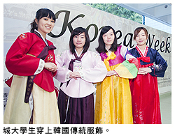 城大2011韓國週充分展示了韓國的傳統文化與現代風貌,精彩內容包括街頭舞蹈和歌唱表演,還有韓國文化、文學、歷史知識講座,以及韓文和韓語教學工作坊。