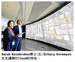 ECloud使原本只能逐一瀏覽的網絡資料如信件及圖片等變為恍若身臨其境的體驗, 這項硏究的負責人是ALiVE研究總監Sarah Kenderdine博士,以及城大創意媒體學院院長兼ALiVE總監邵志飛教授。