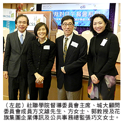 「總裁對談午餐會系列」是香港社會服務聯會(社聯)學院每年一次的盛會,由社聯舉辦、花旗集團提供贊助。五年來,應邀出席午餐會發表演講的嘉賓分別來自政府、學界和商界。社聯行政總裁方敏生女士午餐會前致詞歡迎郭教授擔任演講嘉賓。