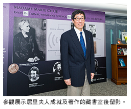 對話結束後,聽眾參觀在圖書館展出的「科學與工程藏書室」,展出的物品呈現了第一位女性諾貝爾獎得主居里夫人的成就與著作。