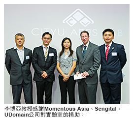 城大應用程式實驗室總監、電子工程學系助理教授張澤松博士透露,這個實驗室贏得城大創意孕育器計劃的獎項,因而獲得撥款資助成立,Momentous Asia、Sengital、UDomain公司也慷慨捐款支持。