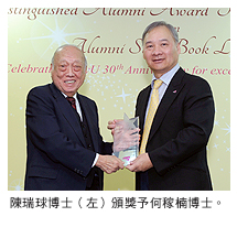 另一位傑出校友得獎者何稼楠博士也在典禮上致詞,表示這個獎項對自己有深遠意義。他說:「母校正慶祝踏入三十周年,我在今年獲得這個獎項,實在感到非常榮幸。城大能夠迅速發展,是全體師生和校友共同努力的成果。」