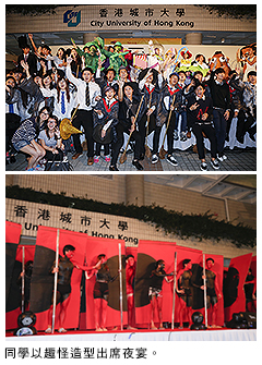 夜宴安排了一連串的特備節目,先有城大舞蹈學會的精彩舞蹈表演,隨後有音響工程學會樂隊的即興合奏,音樂學會表演無伴奏合唱,魔術學會的同學登場表演,技藝出神入化,令人既緊張又興奮。參與時裝表演的同學悉心打扮,變身為電影《怪獸大學》中的卡通人物,另有人裝扮成交通紅綠燈,甚至變為城大的紅色大門、俄羅斯方塊、自由神像、水母等趣怪造型,在臺上又唱又跳,全情投入。臺