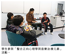 郭博士表示,正向心理學是一門深入探討個人優勢、資源、能力等內在心理能量的社會科學,而音樂治療的活動形式如聽、唱、演奏、律動等,能夠有效協助青少年表達情緒、發揮創意和學習合作解難。她說:「透過整合正向心理學與音樂治療元素,我們發展了一套創新的小組活動,目的是發掘和發展學生的正面心理特質,協助他們積極面對生活中的壓力和挑戰,以減低他們的焦慮、抑鬱和增強正面和樂觀的生活態度。」