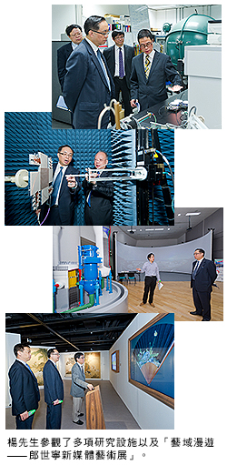 會(huì)面結(jié)束後,楊先生參觀了智能能源轉(zhuǎn)換及應(yīng)用研究中心,了解電力電子學(xué)研究設(shè)施、研究計(jì)劃及其應(yīng)用。他亦參觀了先進(jìn)核安全及可持續(xù)發(fā)展中心的核反應(yīng)堆模型、毫米波國家重點(diǎn)實(shí)驗(yàn)室的毫米波及太赫茲技術(shù)的研究設(shè)施,以及「藝域漫遊——郎世寧新媒體藝術(shù)展」。
